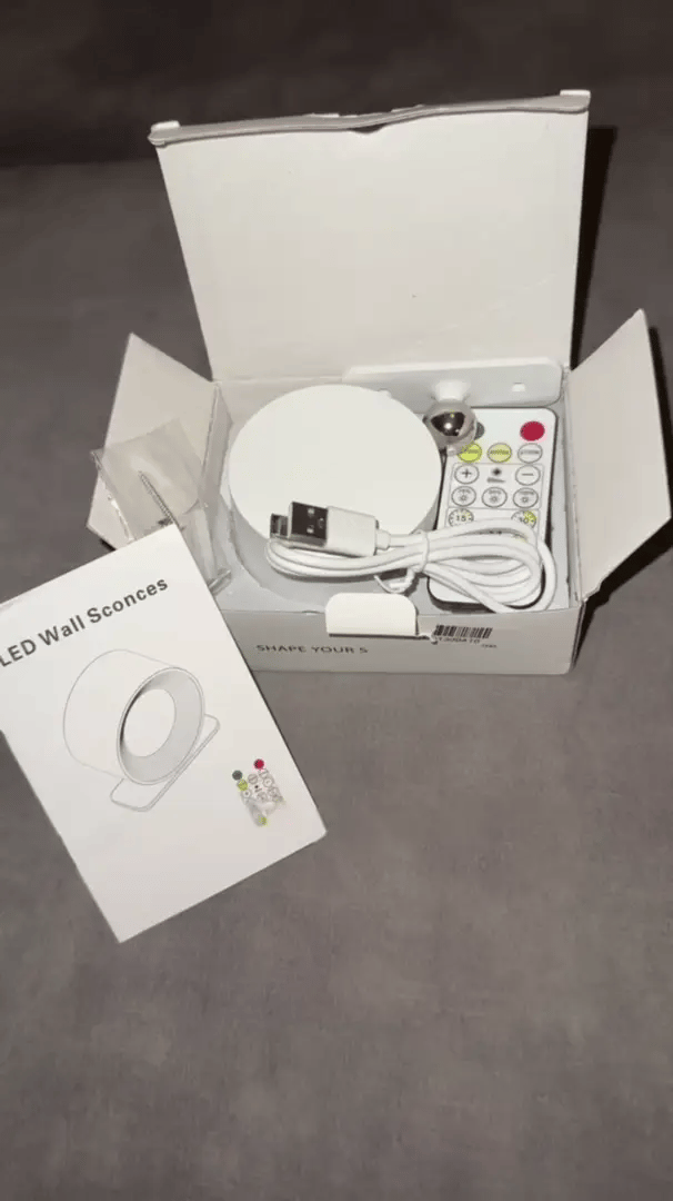 Recibe la lámpara Svala en un paquete completo: lámpara, soporte magnético o adhesivo, control remoto táctil y cable de carga. Empaque seguro, instalación sencilla y estilo listo para brillar.