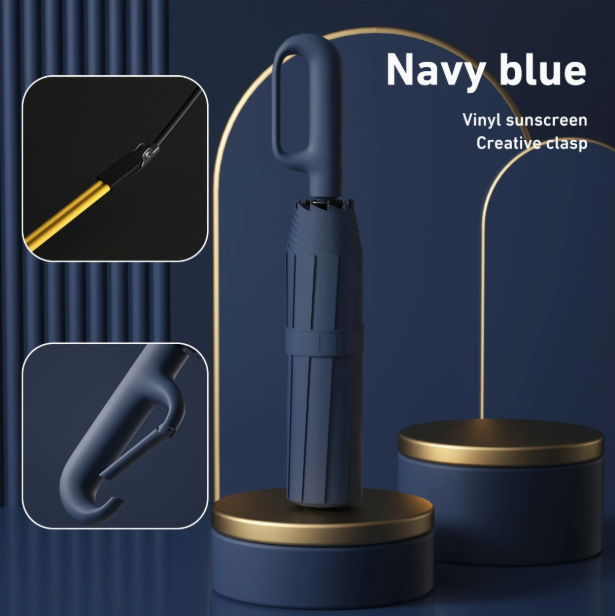 Sombrilla Automatica Compacta 10 Varillas Gancho Hebilla Colgar Paraguas Lluvia
