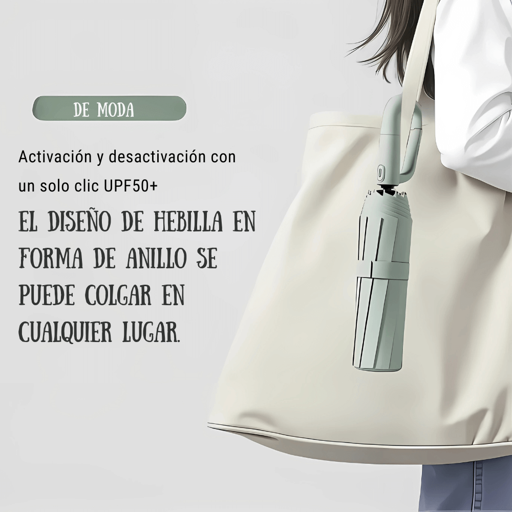 - Apertura y cierre automático: este paraguas plegable compacto está equipado con un botón de un toque para abrir y cerrar sin interrupciones, lo que proporciona comodidad para días ocupados o lluvias repentinas.