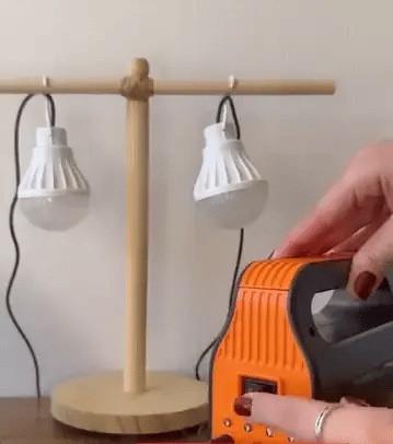 Viene con 2 linternas LED, 2 lamparitas colgantes y un foco lateral — perfecto para iluminar cocina, dormitorio y sala al mismo tiempo